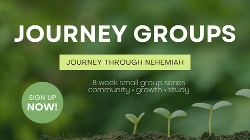 Sign up for Journey Groups! They are a great setting within a group of 4-5 of the same gender to connect with others, study God's Word, and grow in your relationship with the Lord. We will be studying the book of Nehemiah for this session. Journey Groups will start sometime in mid-October (exact date TBD) and run for about 7-8 weeks straight.