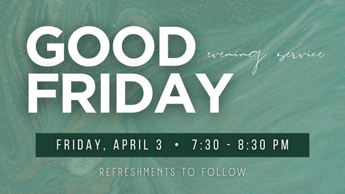 Join us for a special Good Friday Evening Service as we reflect on the sacrifice of Christ and prepare our hearts for Easter. This meaningful service will be a time of worship, reflection, and remembrance as we gather together as a church family. Refreshments will be available following the service, providing an opportunity to connect and fellowship.